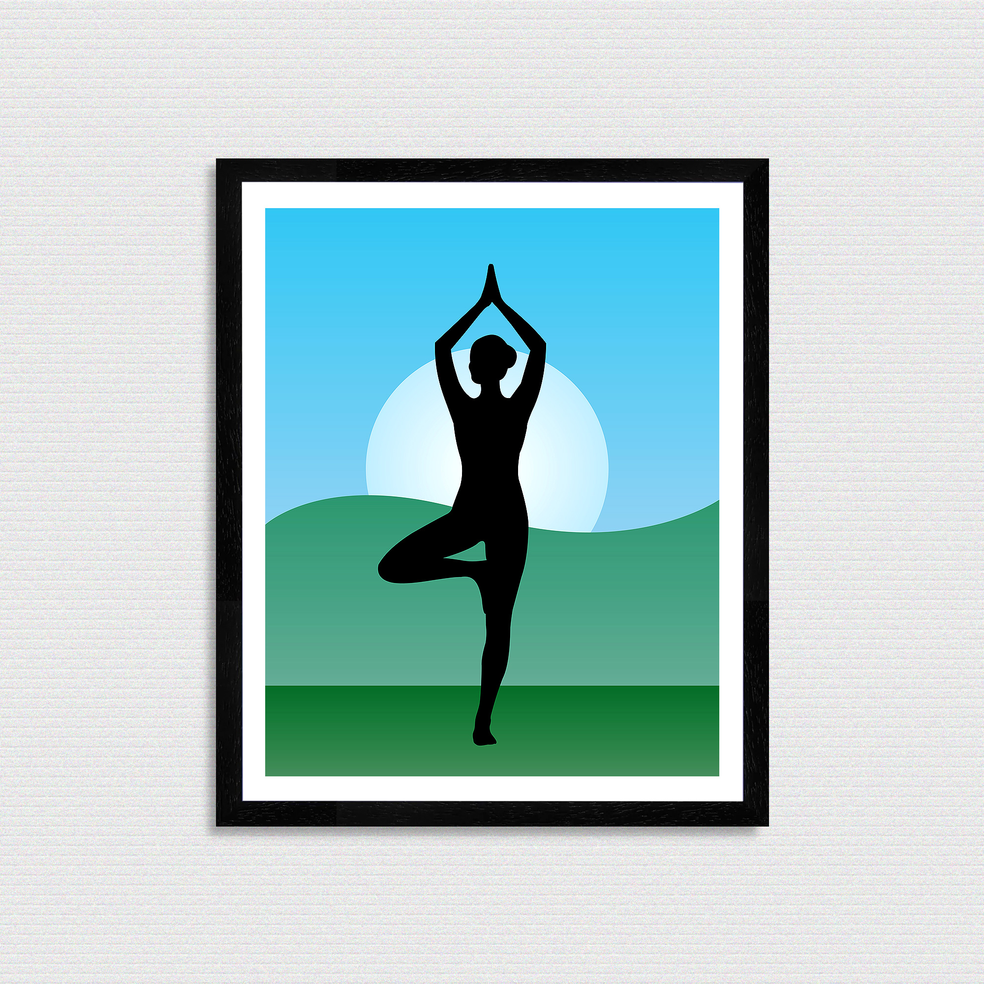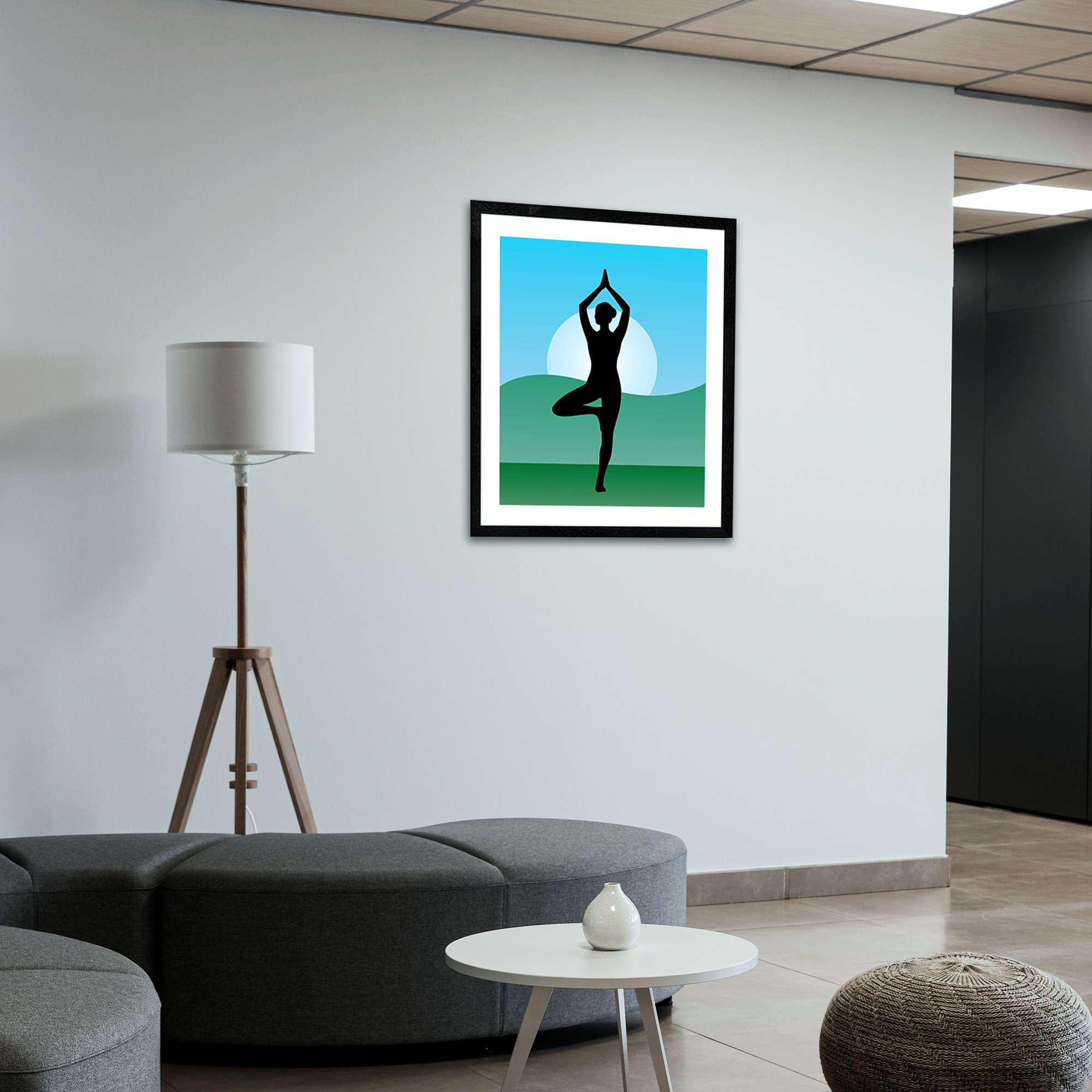 This serene wall poster features a yoga silhouette in the tree pose, symbolizing balance, calmness, and inner strength. Set against a peaceful sunrise backdrop, it inspires mindfulness and positivity-perfect for creating a relaxing atmosphere in homes, offices, or yoga studios. The minimalist design adds elegance while reminding viewers to stay grounded and centered amidst daily life.