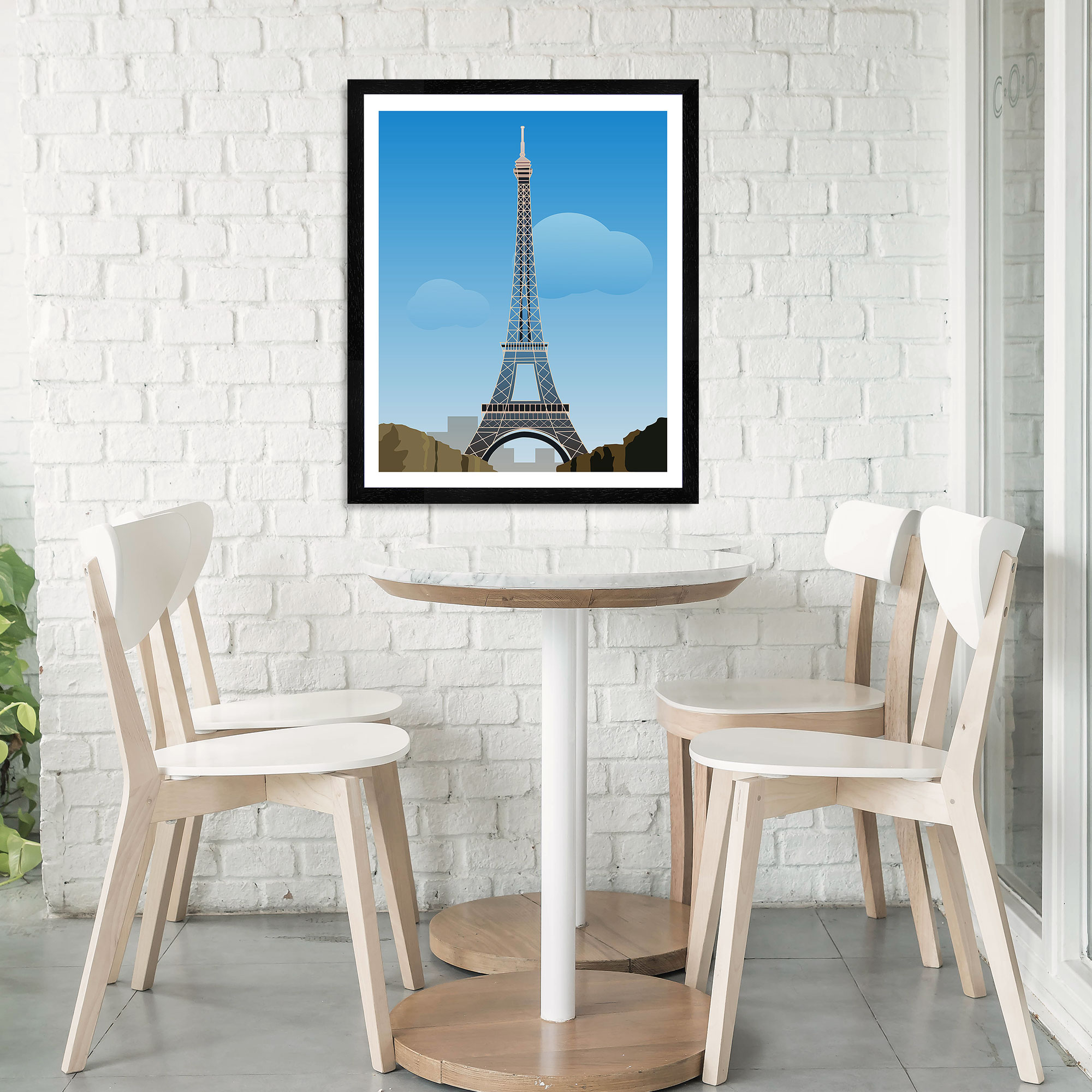This vectorized wall poster of the Eiffel Tower captures the timeless elegance of Paris through clean lines and balanced colors. Framed neatly and finished with a matte lamination, it offers a refined, glare-free look that enhances its minimalist charm. Perfect for modern interiors, the artwork adds a subtle touch of travel-inspired sophistication to living rooms, offices, or creative spaces without overwhelming the décor.